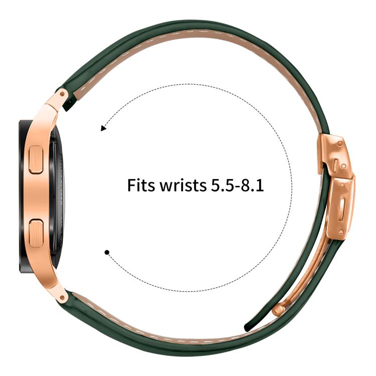 Correa de cuero con hebilla trasera de tortuga en oro rosa y textura de lichi de liberación rápida para Samsung Galaxy Watch 7 de 40/44 mm (verde)