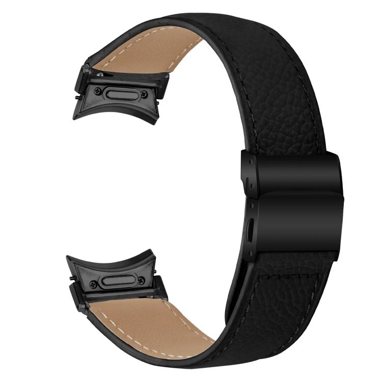 Correa de cuero con hebilla trasera de tortuga negra y textura de lichi de liberación rápida para Samsung Galaxy Watch 7 de 40/44 mm (negro)