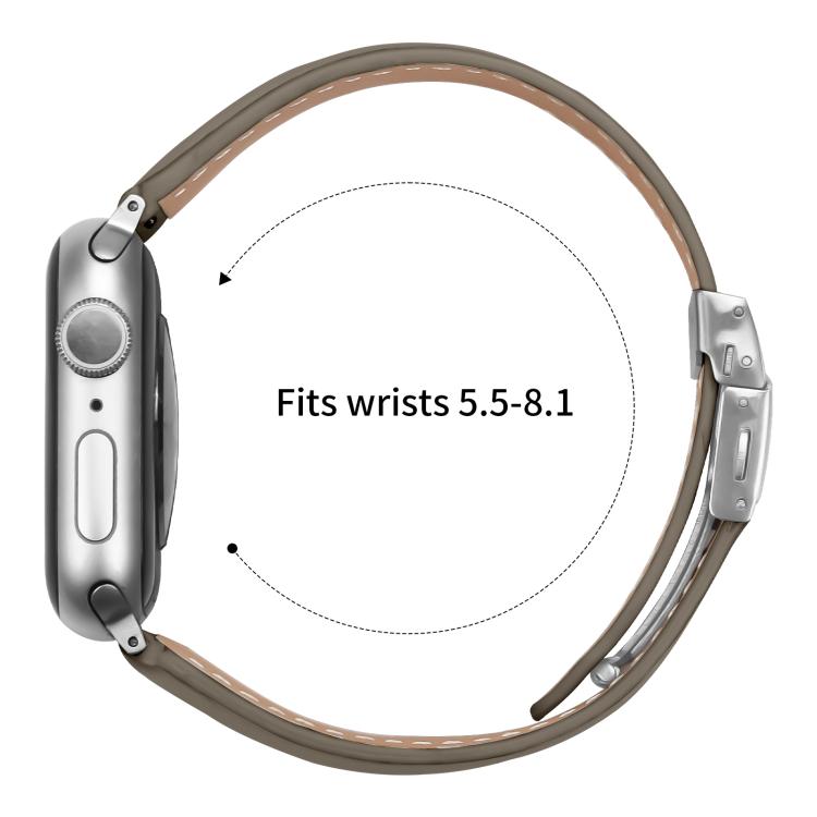 Correa de cuero con hebilla trasera de tortuga plateada y textura de lichi para Apple Watch de 46 mm, 49 mm, 45 mm y 44 mm (gris)