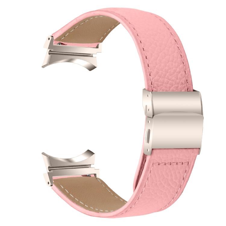 Correa de cuero con hebilla trasera de tortuga y textura de lichi para Samsung Galaxy Watch 7 (40/44 mm, rosa)