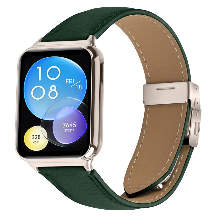 Correa de cuero con hebilla trasera de tortuga y textura de lichi para Xiaomi Smart Band 9 Pro y Redmi Watch 5 (verde)
