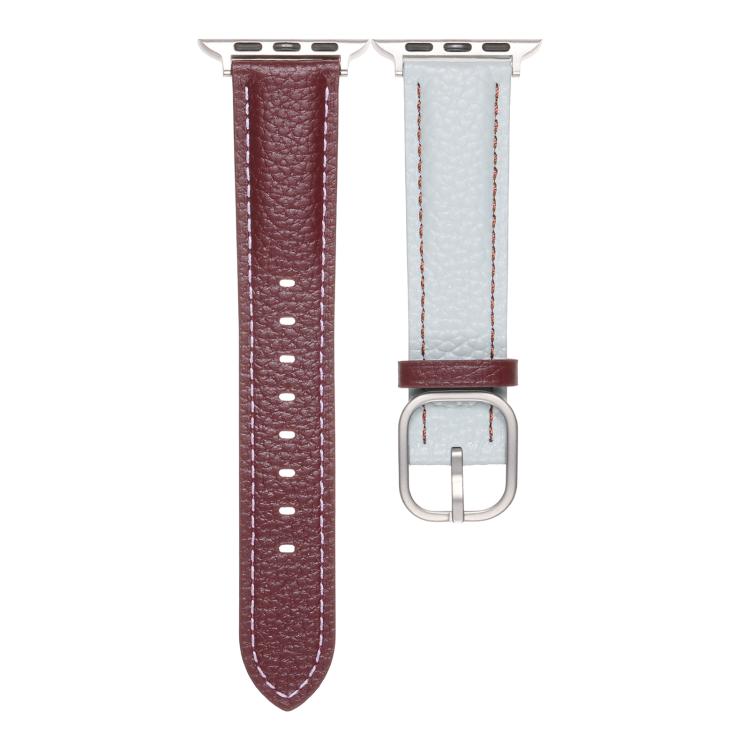 Correa de cuero genuino con textura de lichi y hebilla cuadrada para Apple Watch de 42 mm, 41 mm, 40 mm y 38 mm (azul brumoso burdeos)