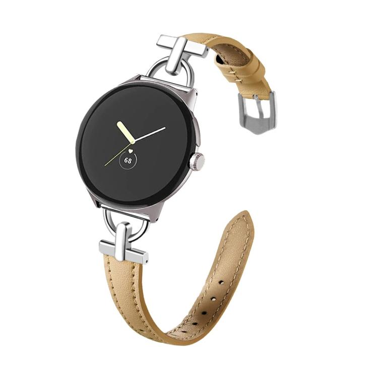 Correa de cuero metálica en forma de D de 45 mm para Google Pixel Watch 4/3 (caqui)