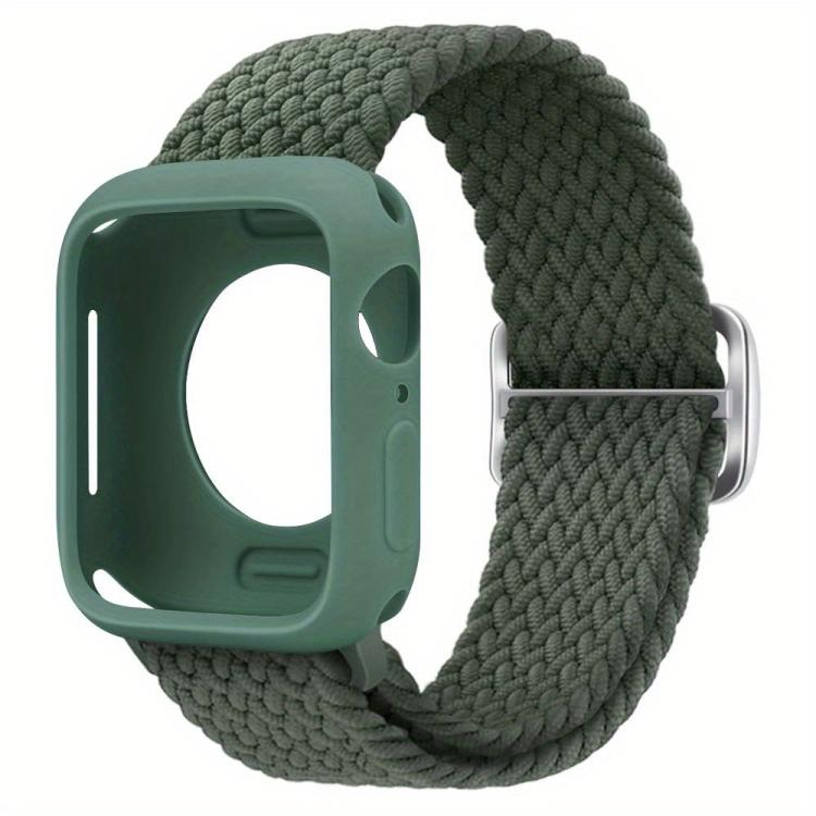 Correa de nailon con hebilla de escalera y funda de silicona para Apple Watch de 40 mm/41 mm (verde militar)