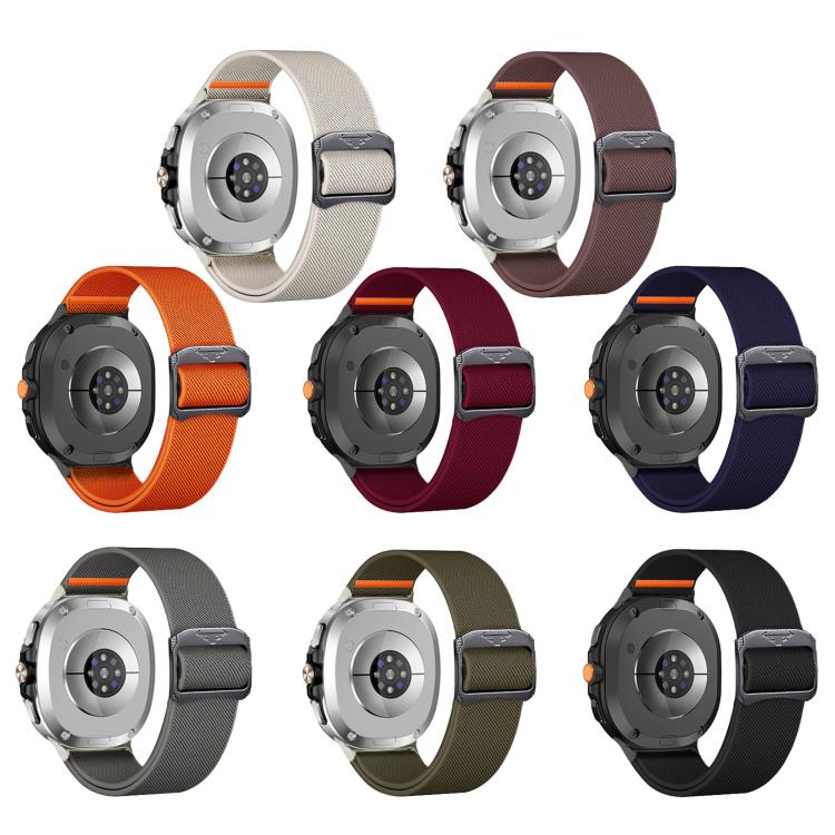 Correa de nailon elástica con hebilla clásica de cabeza de toro para Samsung Galaxy Watch 8/Watch 8 (gris oscuro)