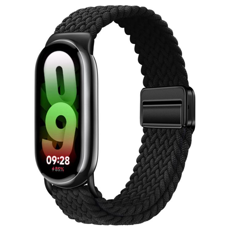 Correa de nailon trenzado con hebilla magnética para Xiaomi Smart Band 10/9/8 (negra)