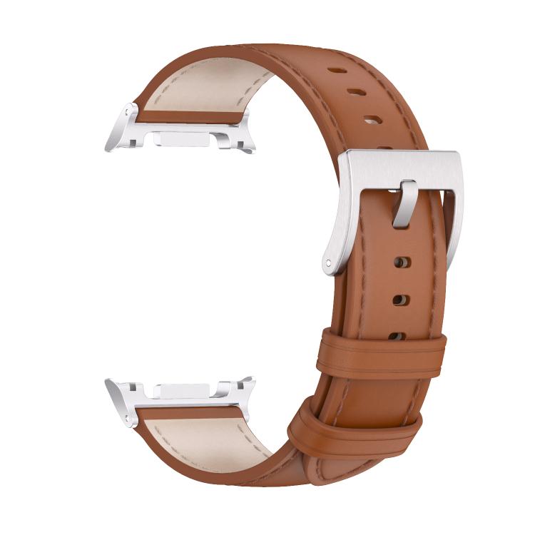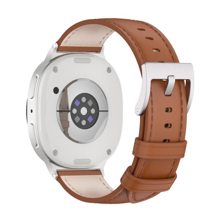 Correa de piel de vaca auténtica MIJOBS para Samsung Galaxy Watch8/Watch8 Classic (marrón y plateado)