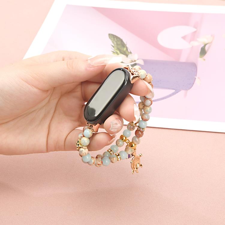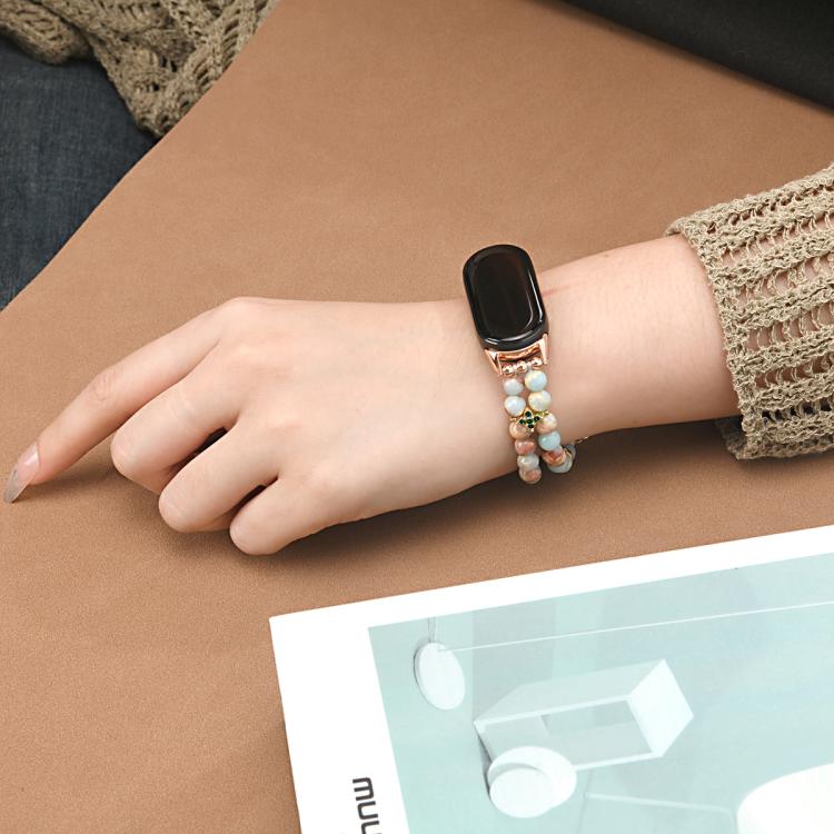 Correa de reloj con cadena de cuentas de doble fila para Xiaomi Smart Band 10/9/8 (azul océano)