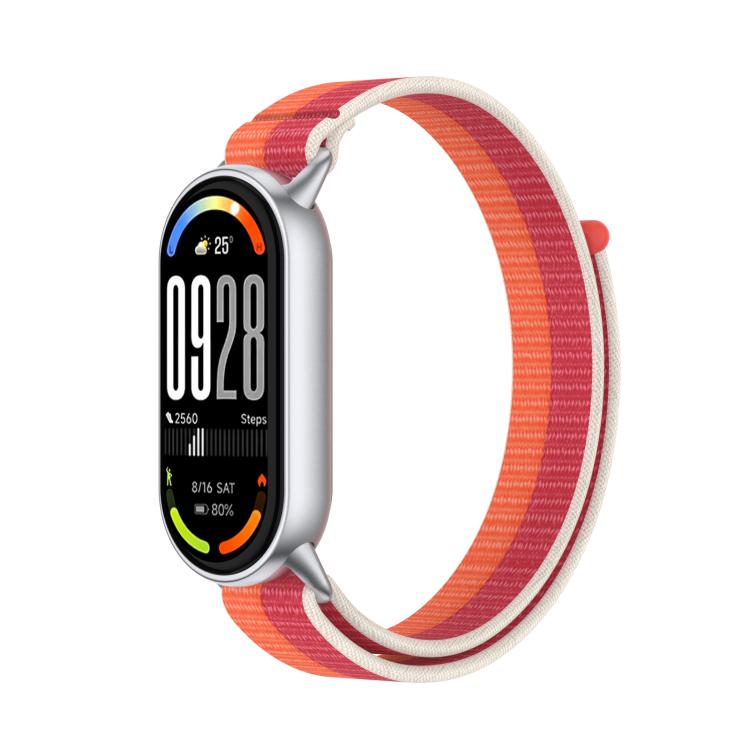 Correa de reloj con cierre de velcro de nailon integrado para Xiaomi Smart Band 10/9/8 (Peonía)
