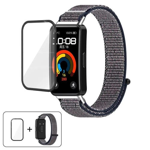 Correa de reloj con cierre de velcro de nailon y película curva 3D para Huawei Band 9/9 NFC (azul medianoche)