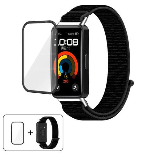 Correa de reloj con cierre de velcro de nailon y película curva 3D para Huawei Band 9/9 NFC (negra)