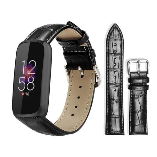 Correa de reloj de cuero con hebilla de pasador y textura de bambú xDfind de 12 mm para Fitbit Luxe / Edición Especial (negra)