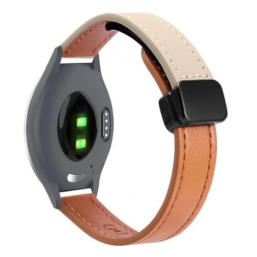 Correa de Reloj Cuero Microfibra Garmin Active S 18mm Hebilla Magnética (Naranja Aima y Albaricoque Crema)