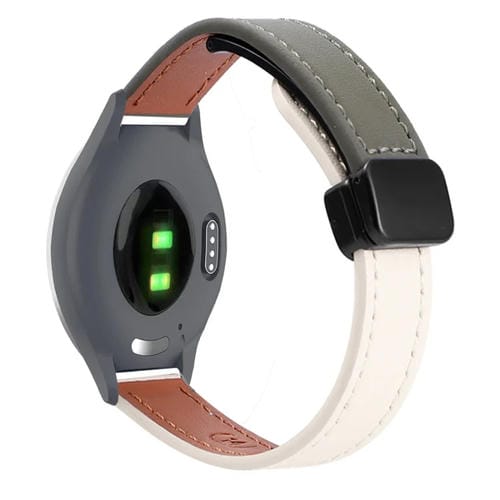 Correa de Reloj de Cuero Microfibra con Hebilla Magnética 18mm para Garmin Active S (Verde Albaricoque y Aguacate)