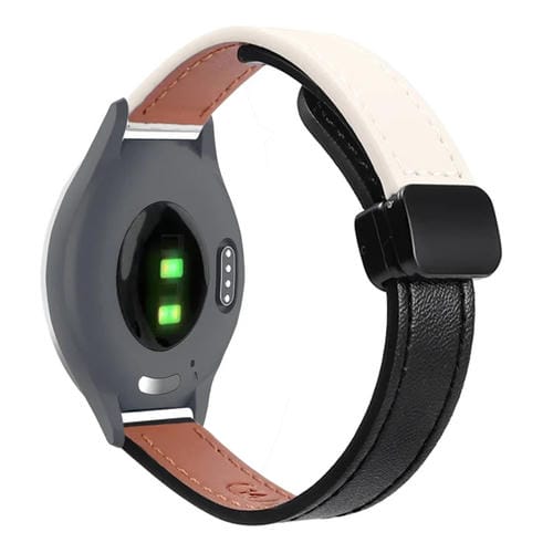 Correa de Reloj de Cuero Microfibra con Hebilla Magnética 18mm para Garmin Vivomove 3S (Negro y Albaricoque)
