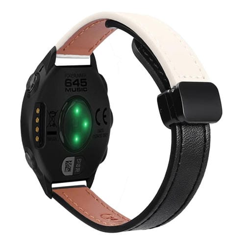 Correa de Reloj de Cuero Microfibra 20mm con Hebilla Magnética para Garmin Forerunner 645 Music (Negro y Albaricoque)