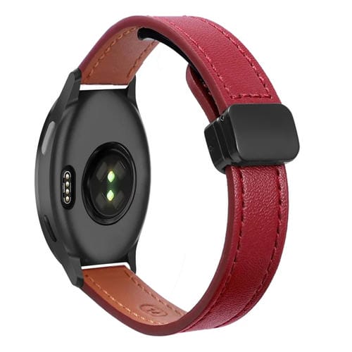 Correa de Reloj Cuero Microfibra 20mm con Hebilla Magnética para Garmin Vivoactive 5 (Rojo Vino)