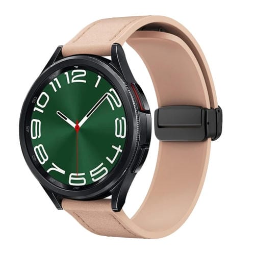 Correa de Reloj de Cuero y Silicona con Hebilla Magnética Negra 20mm (Rosa)