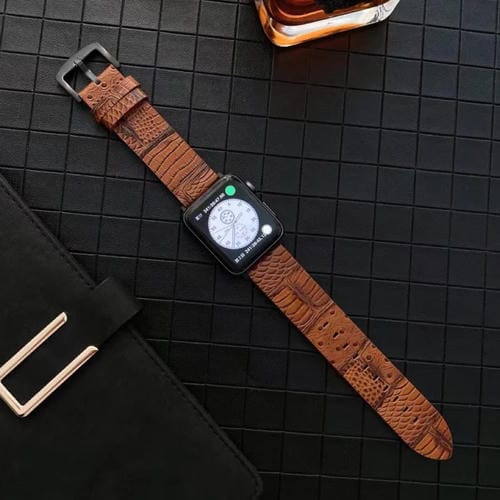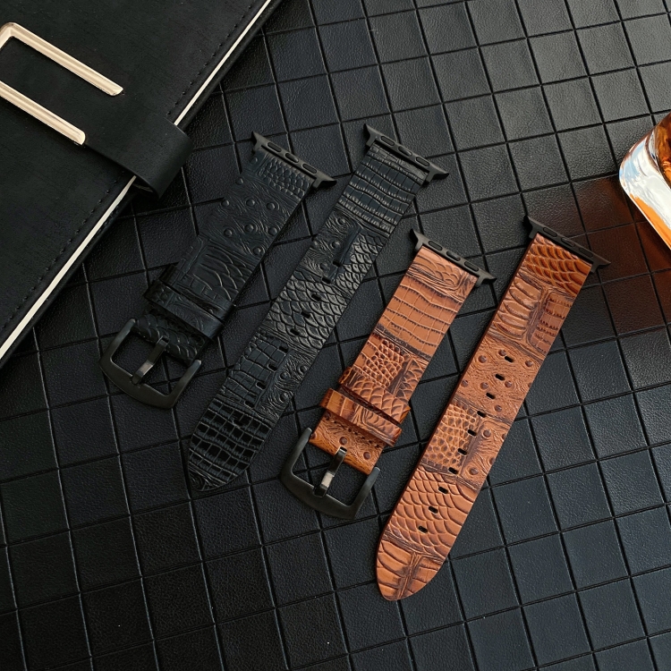 Correa de Reloj Cuero Genuino Cocodrilo y Avestruz para Apple Watch Series 8 7 41mm (Marrón)