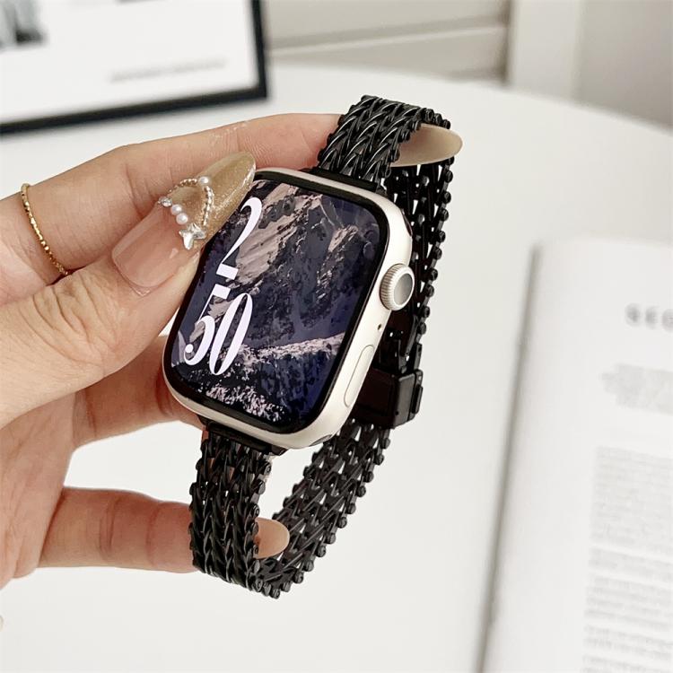 Correa de reloj de malla metálica de acero delgada con cierre magnético para Apple Watch de 46 mm / 49 mm / 45 mm / 44 mm (negra)