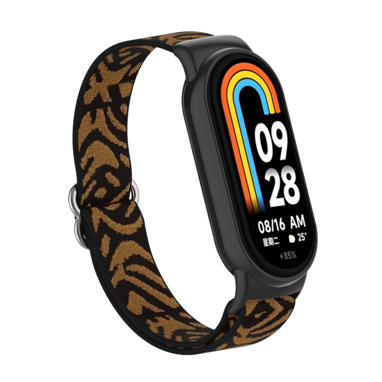 Correa de reloj de nailon elástica lisa con tapón de plástico para Xiaomi Smart Band 9/8 (estampado de leopardo)