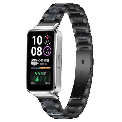 Correa de reloj de resina metálica de tres cuentas xDfind para Huawei Band 10/9/8 (negro y azul)