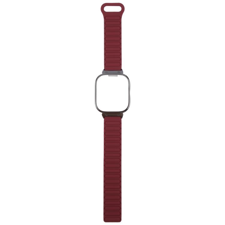 Correa de reloj de silicona magnética con forma de I integrada con marco de metal negro para Redmi Watch 5/Watch 4 (vino tinto y negro)