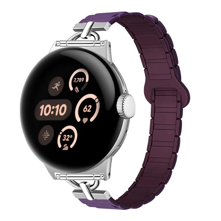 Correa de reloj magnética de silicona con tres cuentas en forma de D de 41 mm para Google Pixel Watch 4 / 3 / 2 / 1 (morado ciruela)