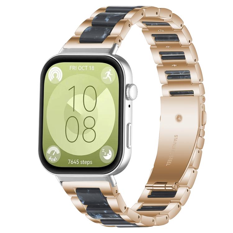 Correa de resina metálica de tres cuentas para Huawei Watch Fit4 / Fit4 Pro / Fit3 xDfind (oro rosa y azul)