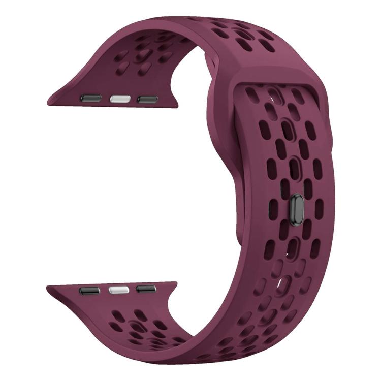 Correa de silicona con hebilla de malla invertida para Apple Watch de 42 mm, 41 mm, 40 mm y 38 mm (rojo vino)