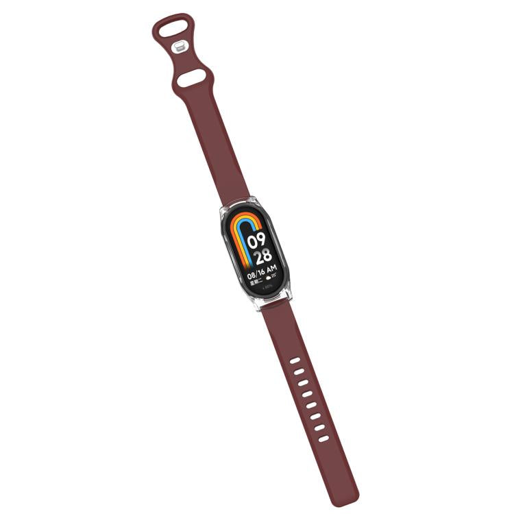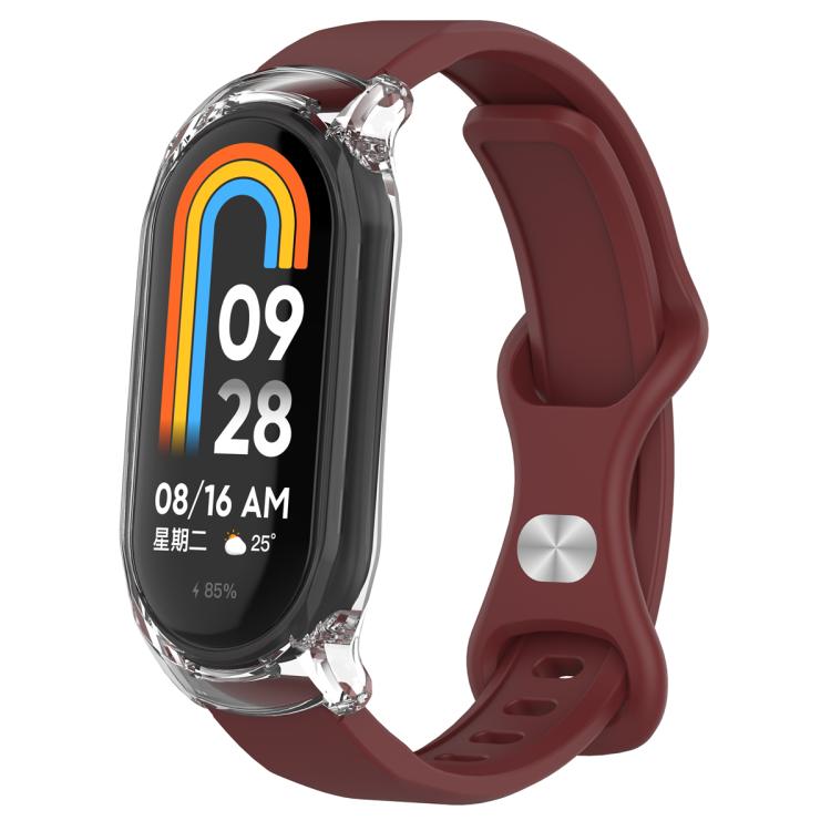 Correa de silicona con hebilla de mariposa para Xiaomi Mi Band 8 con funda transparente (rojo vino)