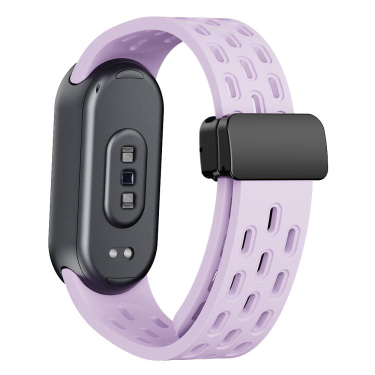Correa de silicona con hebilla magnética negra y agujeros para Xiaomi Smart Band 10/9/8 xDfind (morado claro)