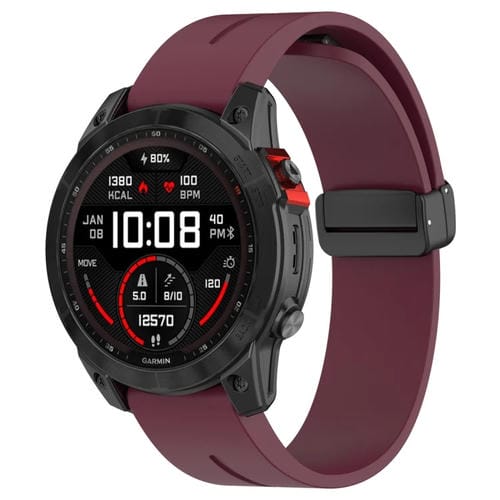 Correa de Silicona con Hebilla Plegable Magnética para Reloj Garmin Fenix 7X (Rojo Vino)