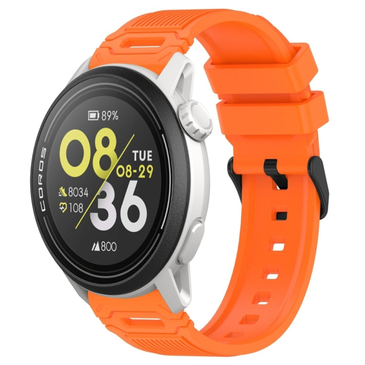 Correa de silicona con hebilla negra y patrón vertical para reloj COROS de 22 mm (naranja)
