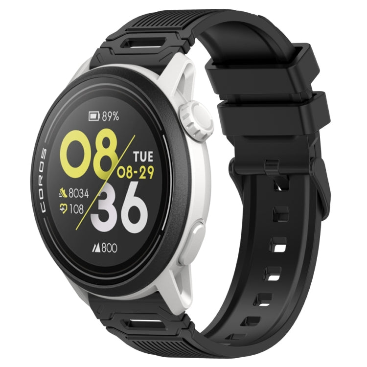 Correa de silicona con hebilla negra y patrón vertical para reloj COROS de 22 mm (negra)