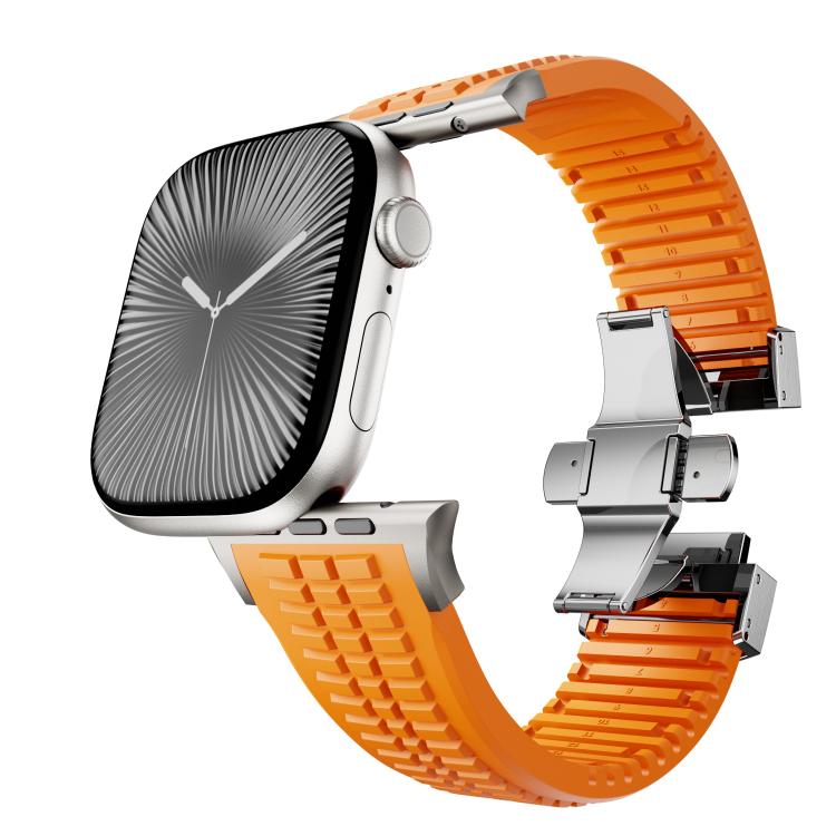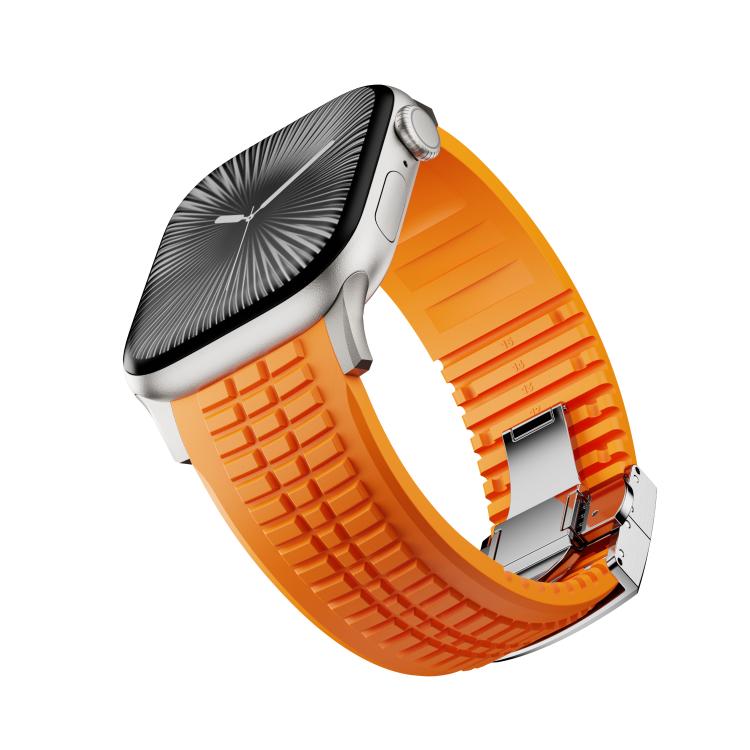Correa de silicona con hebilla plegable y textura moleteada para Apple Watch de 46 mm, 49 mm, 45 mm y 44 mm (naranja titanio)