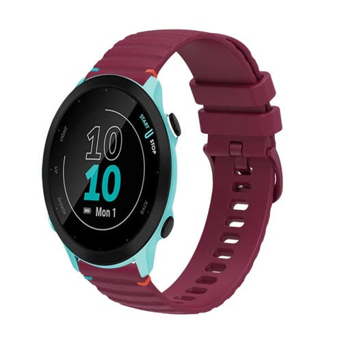 Correa de Silicona con Puntadas Onduladas y Puntos para Reloj Garmin Forerunner 55 20mm (Rojo Vino)