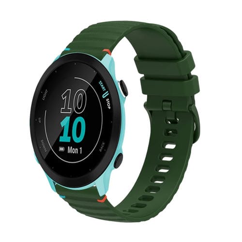 Correa de Silicona 20mm Garmin Forerunner 55 con Puntadas Onduladas y Puntos (Verde Militar)