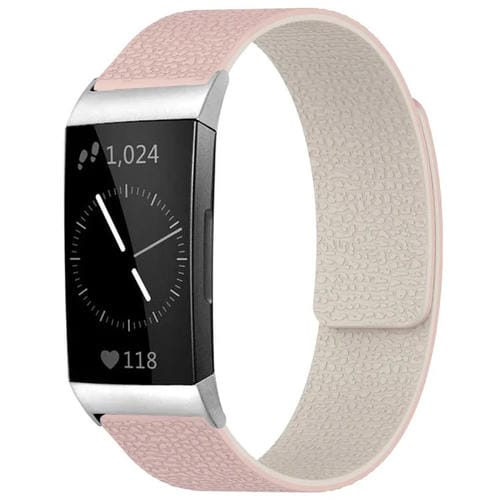 Correa de silicona magnética con textura de lichi para Fitbit Charge 4/Charge 3 xDfind (rosa estrella)