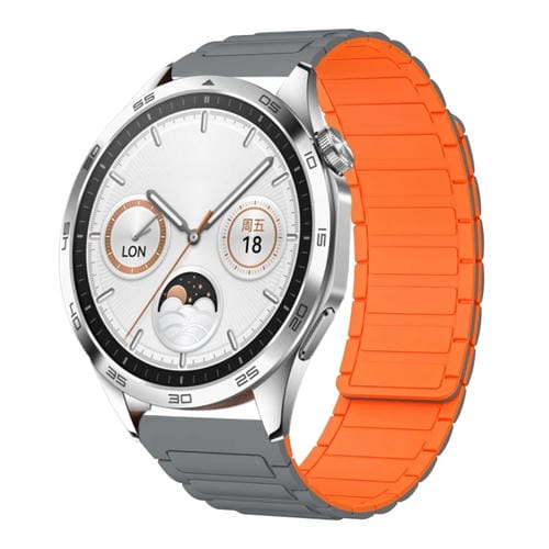 Correa de Silicona Magnética en Forma de I para Huawei Watch GT4 46mm 22mm (Gris y Naranja)