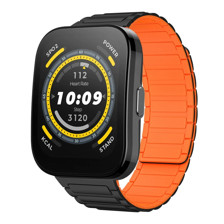 Correa de Silicona Magnética en Forma de I para Reloj Amazfit Bip 5 22mm (Negra y Naranja)