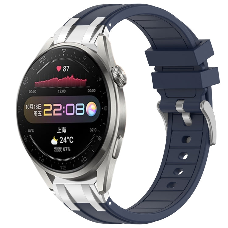 Correa de Silicona para Reloj Huawei Watch3 Pro 22mm con Hebilla Plateada (Azul Marino)