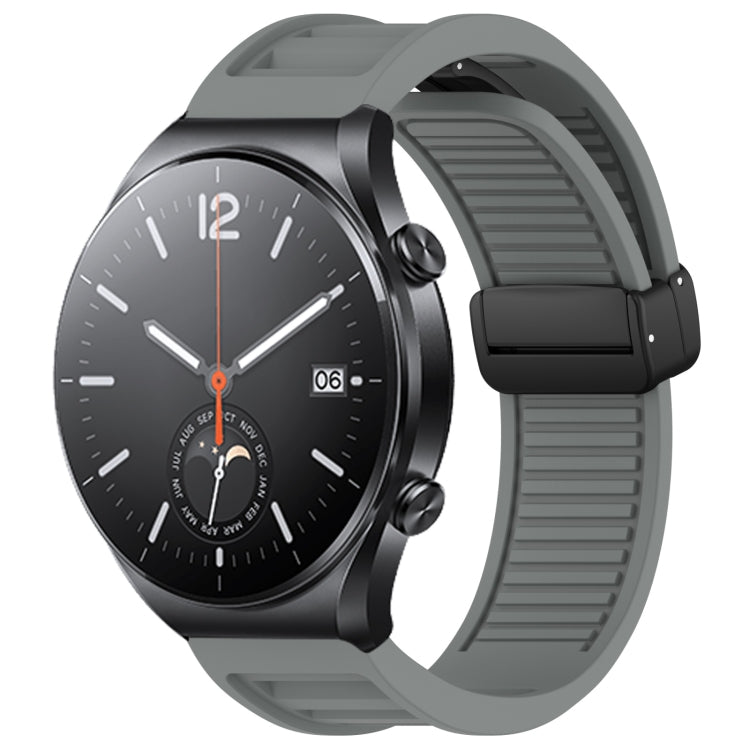 Correa de silicona para reloj Xiaomi Watch S1 con hebilla magnética y ventana ciega de 22 mm (gris oscuro)