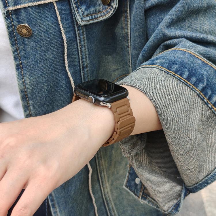 Correa magnética de cuero de tres piezas en forma de I para Apple Watch de 42 mm, 41 mm, 40 mm y 38 mm (marrón)