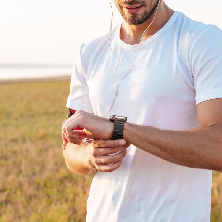 Correa magnética de silicona de doble cara con inserto ciego para Apple Watch de 46 mm, 49 mm, 45 mm y 44 mm, serie DUX DUCIS SD (negro + Starlight)
