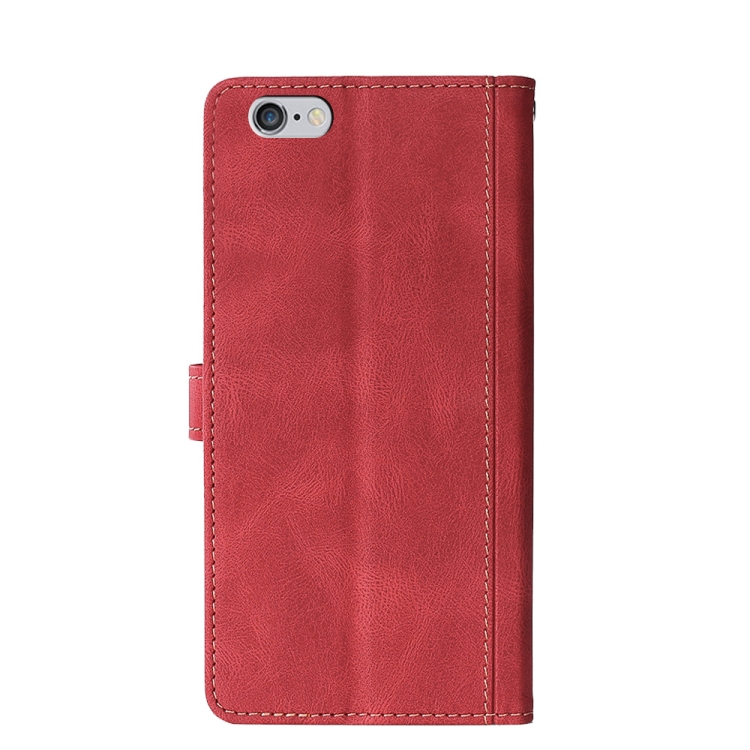 Funda de Cuero iPhone 6S / 6 Costura con Hebilla Magnética Flip Horizontal con Soporte y Ranuras para Tarjetas (Rojo)