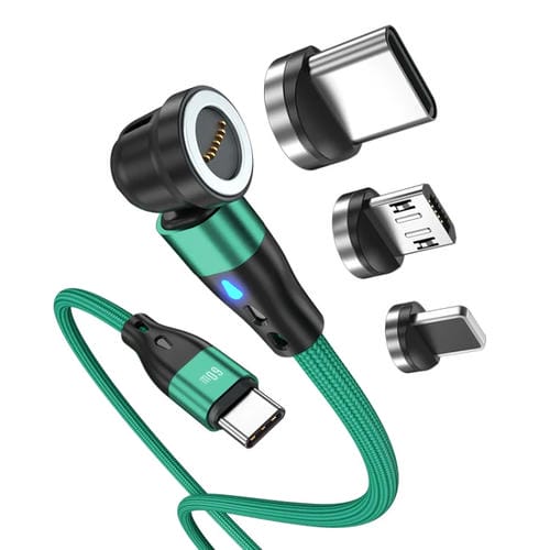 Cable de carga rápida Enkay PD60W Tipo-C a Tipo-C 8 Pines Micro USB Magnético 540° Rotación (Verde) 1 m