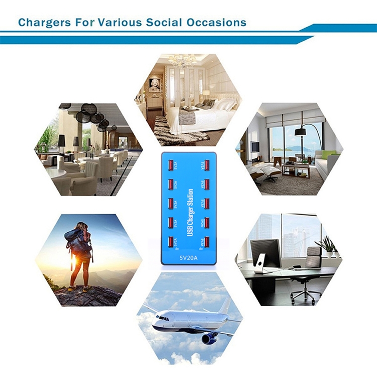 3. 10 puertos USB pueden cargar varios productos digitales al mismo tiempo para satisfacer más necesidades.
