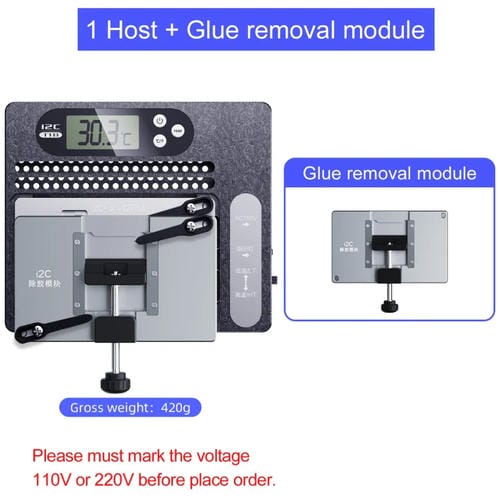La estación de desoldar con Placa Base PCB y Pantalla LCD i2C modelo T18 es una plataforma de Reparación diseñada para la separación y unión precisa de Placas Base y Componentes electrónicos. Compatible con una amplia variedad de chips, esta estación incorpora un módulo de eliminación de pegamento especialmente desarrollado para la Limpieza eficaz de residuos en CPUs y chips. Su diseño modular magnético permite un reemplazo sencillo de los módulos, facilitando la adaptación a diferentes tareas de desoldadura. Equipado con una Pantalla Digital LED de alta definición y dos engranajes de ajuste de temperatura, el equipo ofrece un rango térmico de 180 a 245 grados Celsius, garantizando un control óptimo durante el proceso. Construido en aluminio de aviación con procesamiento CNC, este dispositivo asegura resistencia a altas temperaturas y oxidación, además de un calentamiento rápido gracias a sus Piezas calefactoras de cerámica PTC. El modelo T18 con Enchufe USA es ideal para Técnicos que reparan por cuenta propia y profesionales en la Reparación de Productos electrónicos y Digitales de precisión.