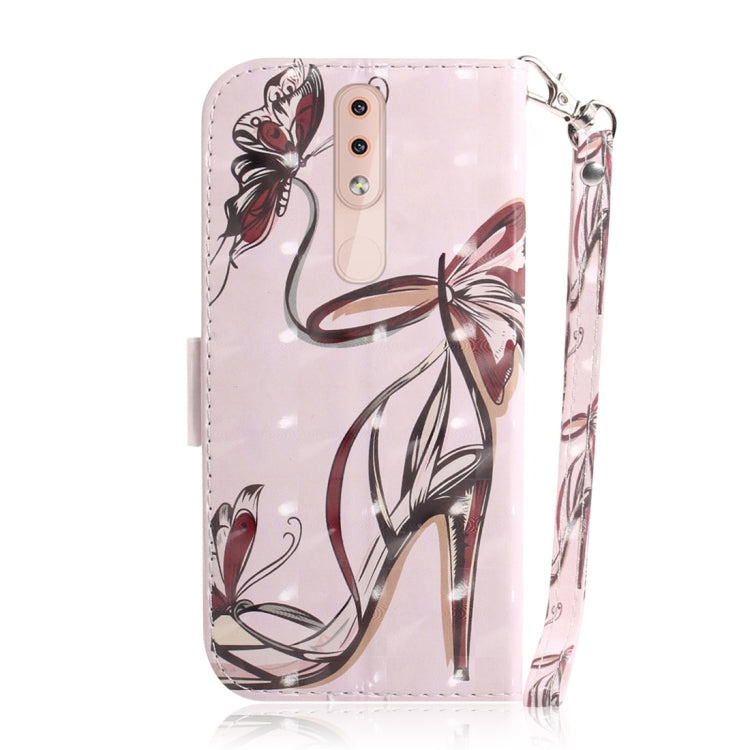 Estuche de Cuero Nokia 4.2 con Tapa Horizontal, Patrón 3D de Tacón y Mariposa, Soporte y Billetera